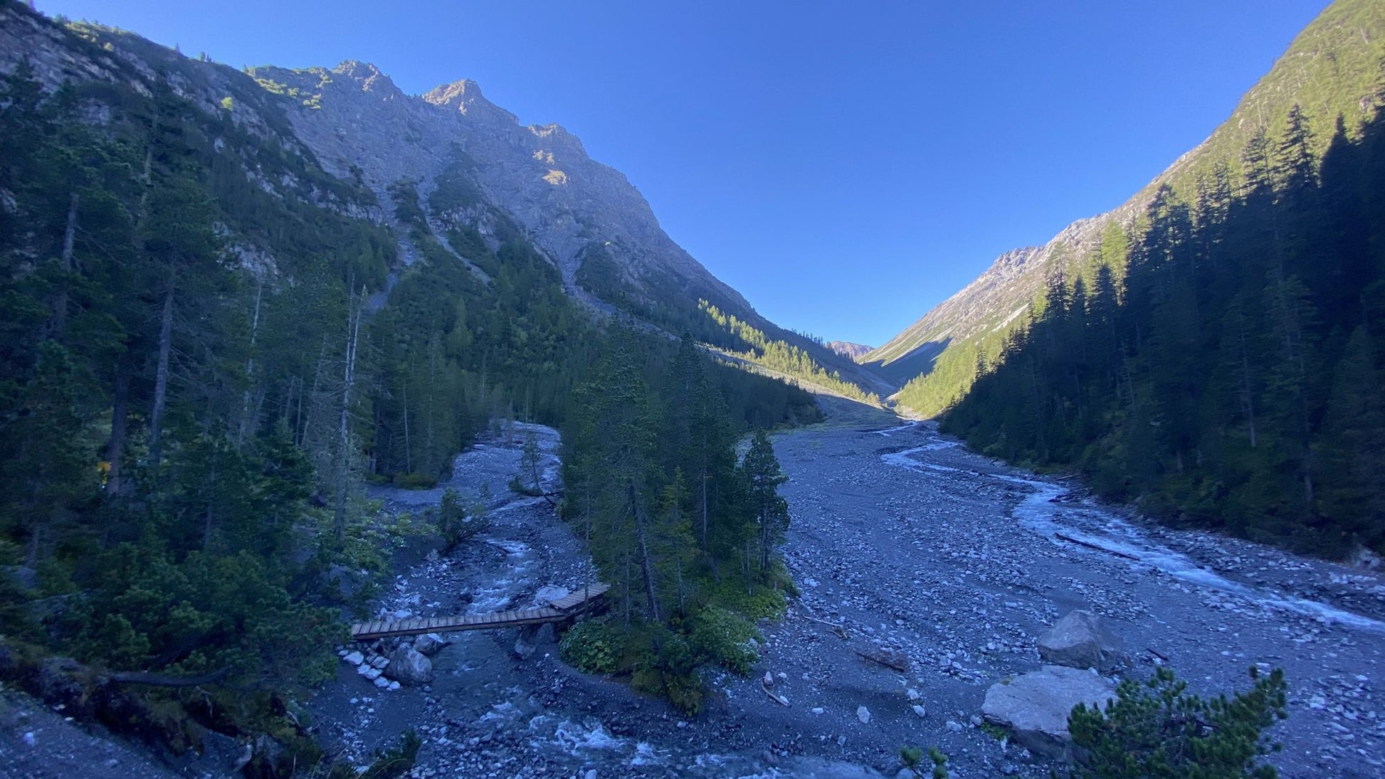 Am Abreisetag wartet noch einmal ein echtes Highlight: Wir laufen zum Alteiner Wasserfall und weiter hinauf zum Tiejer Fürggli. Die Passage dorthin ist sowohl im Auf- als auch im Abstieg alpin und steil – wer sie geht, sollte seine Kräfte noch gut einteilen.